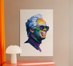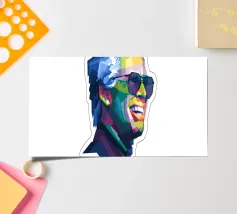 Una vibrante illustrazione WPAP (Wedha's Pop Art Portrait) di Baby Billy, caratterizzata da audaci forme geometriche e colori vivaci e contrastanti che creano un ritratto dinamico e stilizzato pieno di energia e personalità.