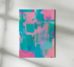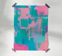 Aggiungete un tocco di colore al vostro spazio con questa versione modificata digitalmente del dipinto astratto originale Happy Accident.