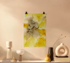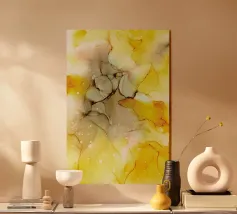 "Ink no.19" è un'opera luminosa a inchiostro alcolico che combina calore, energia e leggera trasparenza. Il mix di giallo solare, delicate tonalità beige e linee sottili crea una profondità organica che ricorda forme naturali, giochi di luce e strutture fluide. Questo disegno astratto dona luminosità e leggerezza moderna a soggiorni, cucine, spazi di lavoro creativi o interni minimalisti. Ideale per chi ama l'arte astratta, l'inchiostro ad alcool, le sfumature di colore morbide e l'arte murale contemporanea.
