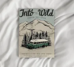 Catturate l'essenza del viaggio di Chris McCandless con questo disegno minimalista ispirato a Into the Wild. Con il vasto orizzonte dell'Alaska, una figura solitaria e la toccante citazione "La felicità è reale solo se condivisa", questa opera d'arte è un omaggio ai temi del film: l'avventura, la scoperta di sé e la bellezza dell'ignoto. Perfetto per i fan del film e per chiunque senta il richiamo della natura selvaggia.