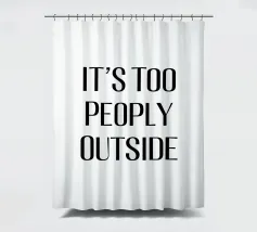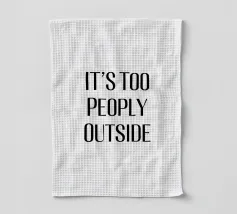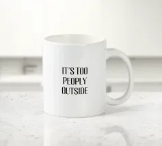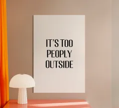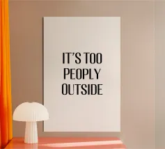 Questo divertente design presenta il testo "IT'S TOO PEOPLY OUTSIDE" in grassetto, in lettere maiuscole nere su sfondo bianco. Il carattere moderno e sans serif conferisce al disegno un aspetto pulito e contemporaneo. Il messaggio del disegno esprime con umorismo la sensazione di voler evitare la folla e i luoghi affollati. Questo design semplice ma efficace fa di questa opera d'arte un vero e proprio richiamo visivo che fa sorridere l'osservatore e al tempo stesso cattura un sentimento relazionabile.