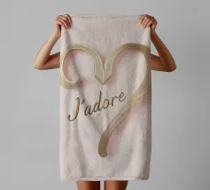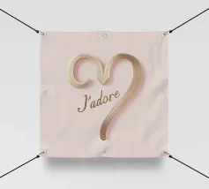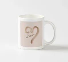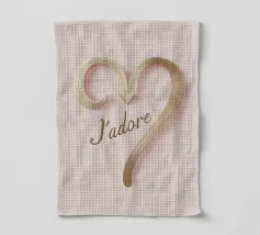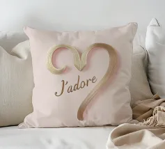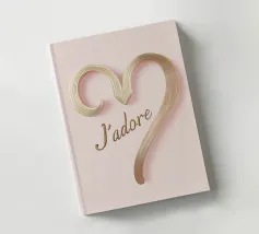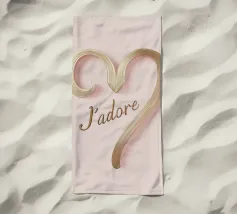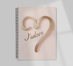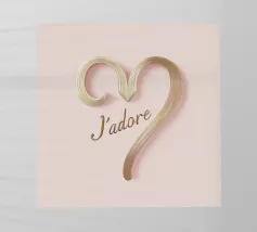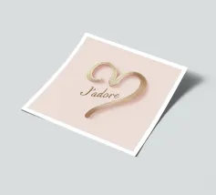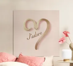 Un elegante cuore dorato su sfondo rosa irradia minimalismo e amore. La scritta "J'adore" in caratteri dorati sottolinea la delicata bellezza e la grazia di questo disegno.