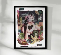 I collage vibranti e divertenti sono ispirati ai sogni diurni, ai disegni asiatici, alle vibrazioni estive mediterranee, ai film, alla musica e alla moda.