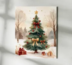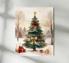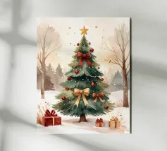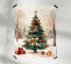 Questo motivo disegnato con amore mostra un albero di Natale in un paesaggio invernale, con colori caldi ed elementi festivi. Le raffinate texture ad acquerello, i morbidi accenti di luce e i dettagli giocosi conferiscono all'immagine un'atmosfera accogliente e nostalgica. Perfetto per le decorazioni invernali, per la camera dei bambini o come regalo d'atmosfera durante il periodo dell'Avvento: un'opera d'arte che fa risplendere il Natale.