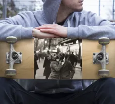 Composizioni assurde con cani umani. Cani umani che, come noi, vivono a Parigi, Los Angeles o Londra e che, come noi, sono appassionati di moda, di automobili o di niente. Cani disillusi, divertiti o amati. Hippy e cani tatuati. Insomma, cani che sono proprio come noi. O noi siamo come loro?
