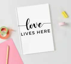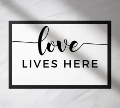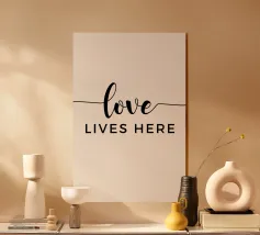 Riempite la vostra casa di calore e positività con questo quadro da parete "Love Lives Here". Un richiamo perfetto alla famiglia, all'unione e all'affetto, che lo rende un pezzo commovente per ogni stanza.