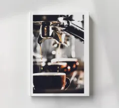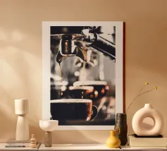 Questo suggestivo motivo cattura l'essenza del piacere del caffè. Nei caldi toni del marrone, mostra il momento in cui l'espresso appena preparato scorre in una tazza, accompagnato da un suggestivo gioco di luci e ombre. Perfetto per tutti gli amanti del caffè e per chi vuole dare alla propria casa un'atmosfera accogliente ed elegante. Che si tratti di un murale, di una tazza o di un cuscino, questo motivo porta il piacere del caffè nella vostra casa.