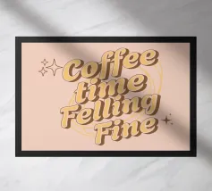 Caratterizzato dalla frase intelligente "Coffee Time Felling Fine" in elegante calligrafia bianca su uno splendido sfondo color crema. Questo pezzo accattivante fonde perfettamente umorismo e raffinatezza, rendendolo un'aggiunta ideale alla cucina, all'ufficio o al soggiorno.