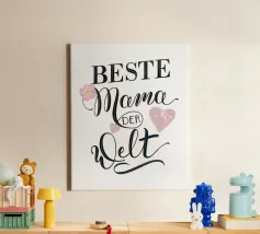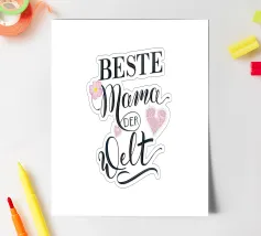 Un motivo delizioso per la mamma migliore. Calligrafia nera a pennello, decorata con fiori e un cuore dall'aspetto di un tessuto di pizzo. Dolcissimo, non solo per la Festa della Mamma. Perfetto anche per compleanni o altre occasioni in cui si festeggia la mamma.