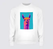 Questo spiritoso motivo pop art mostra un colorato ritratto di lama con un affascinante dente d'oro e un'espressione giocosa. I colori vivaci del rosa, del blu e dell'arancione conferiscono all'immagine un aspetto vivace e moderno. Un'opera d'arte divertente ed elegante, perfetta per chi ama l'allegria, il colore e la cultura pop.