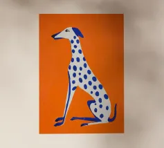 Questo poster accattivante mostra un cane stilizzato con puntini blu su uno sfondo arancione brillante: un vero e proprio richiamo per gli ambienti moderni. Lo stile grafico e minimalista con colori decisi rende il quadro ideale per il soggiorno, il corridoio, l'ufficio o lo studio. Perfetto per chi ama i disegni audaci e i motivi animali. Moderno, minimalista e pieno di carattere.