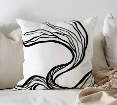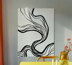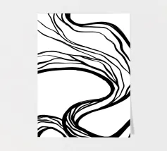 Un motivo a linee organiche in nero su sfondo bianco che raffigura movimenti fluidi e forme naturali. Questo disegno minimalista incarna la leggerezza e l'eleganza ed è ideale per l'arte da parete, le tazze, i cuscini, le cover dei telefoni cellulari e altro ancora. Perfetto per gli amanti dello stile moderno e scandinavo che cercano un'arte semplice ma espressiva per la loro casa. Un motivo versatile che dona armonia a qualsiasi ambiente e rappresenta un regalo elegante per gli amanti dell'arte e del design.