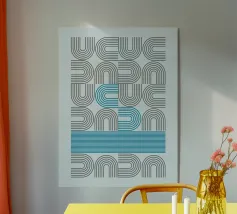 Un motivo tipografico artistico in stile DADA con linee chiare, curve e ripetizioni ritmiche. In grigio monocromatico e blu ciano brillante, questo design minimalista e retrò conferisce un'eleganza moderna a qualsiasi prodotto. Perfetto per gli amanti della line art, della tipografia grafica e dell'estetica ispirata al Bauhaus: un elegante richiamo per murales, magliette, tazze o cuscini.
