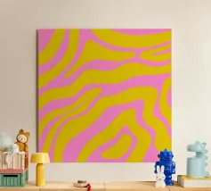 Trasformate il vostro spazio con questa audace e vibrante opera d'arte astratta, che presenta linee gialle curve su un sorprendente sfondo rosa. Questo pezzo dinamico incarna energia e creatività ed è perfetto per aggiungere un tocco contemporaneo al vostro arredamento.