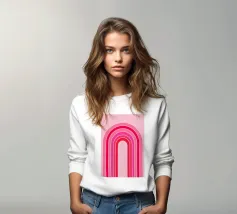design retrò, arte geometrica, arredamento rosa, curve astratte, combinazione di colori vivaci, stampa grafica moderna