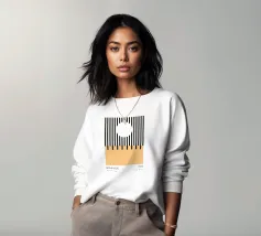Moderno design astratto caratterizzato da linee verticali nere uniformemente distanziate che si estendono su un'area rettangolare marrone piena, creando un contrasto sorprendente e un effetto visivo dinamico.