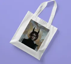 Un ritratto accattivante di una donna che indossa una maschera nera e corna, evidenziato da un'aureola dorata luminosa e da uno sfondo astratto e strutturato, che crea un'atmosfera mistica ed enigmatica.