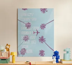 Questo poster di viaggio umoristico è perfetto per chi ama gli aerei e la voglia di viaggiare. La frase "Non vedo l'ora di camminare lungo il corridoio per trovare il mio posto sull'aereo" unisce l'amore per i viaggi a una strizzatina d'occhio. Le palme, il cielo e l'aereo conferiscono un tocco estivo, ideale come regalo o decorazione murale per gli appassionati di viaggi.
