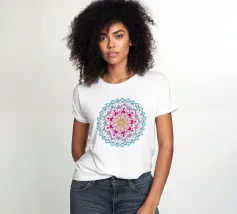 Un bellissimo mandala nei colori dell'arcobaleno. Un grande colpo d'occhio in questa armoniosa composizione di colori.