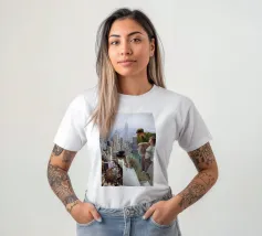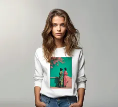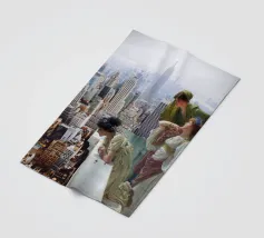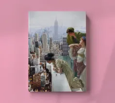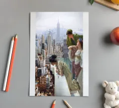 "Manhattan View" è un collage digitale che fonde la fotografia contemporanea con la grandiosità della pittura neoclassica. In quest'opera, diverse belle donne dell'epoca sono ritratte in cima a un grattacielo, affascinate dalla vista abbagliante di tutta Manhattan. I loro gesti e le loro espressioni interagiscono armoniosamente con l'ambiente urbano, evocando l'eleganza e l'eccitazione di un'epoca passata e celebrando al contempo la bellezza e il dinamismo della città moderna."