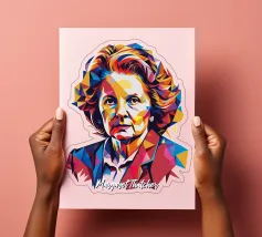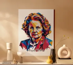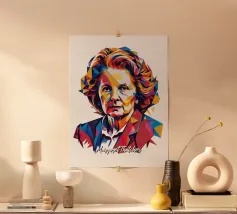 Celebrate l'importante eredità di Margaret Thatcher con questo audace disegno Pop Art di WPAP. Utilizzando forme geometriche sorprendenti e una palette di colori vivaci, quest'opera d'arte reinterpreta l'iconico Primo Ministro britannico in uno stile moderno e astratto. La tecnica WPAP (Wedha's Pop Art Portrait) cattura lo spirito tenace della Thatcher e la sua significativa influenza sulla politica britannica e sugli affari globali. Perfetto per gli appassionati di politica, gli amanti dell'arte e gli ammiratori di una forte leadership, questo disegno è un tributo unico a una delle figure più importanti della storia moderna.
