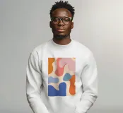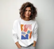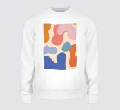 Un'armoniosa composizione astratta di forme organiche sovrapposte in una morbida e calda tavolozza di colori pastello. L'opera d'arte è delicata e moderna, con una qualità ritmica e rilassante.