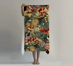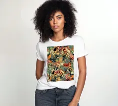 "I motivi e i disegni di Burcu Korkmazyurek si trasferiscono perfettamente dalle radici della moda alle stampe su tela. I suoi realistici motivi floreali e animali si integrano o contrastano con sfondi che vanno dal"