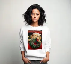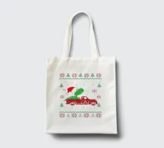 Il disegno festivo raffigura un dinosauro verde con un cappello da Babbo Natale, alla guida di un camion rosso. Intorno al dinosauro ci sono decorazioni a tema natalizio, come alberi di Natale e fiocchi di neve, con il testo "Merry Dynastmas - Purrrrrrrr".