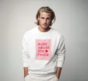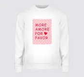 Questo poster presenta la giocosa scritta "More Amore porFavor" in rosso acceso, che appare particolarmente vivace su uno sfondo rosa a pois bianchi. La tipografia e il cuore rosso conferiscono al motivo un aspetto allegro e affettuoso. Nel complesso, l'immagine irradia leggerezza, ottimismo e un'affascinante dose di estetica bonaria.