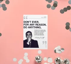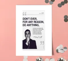 Un audace tributo all'oratore motivazionale più confuso del mondo, questo disegno cattura l'iconica citazione di Michael Scott in tutto il suo assurdo e rotondo splendore.