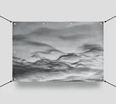 Fotografia artistica in bianco e nero di un cielo nuvoloso. Le nuvole, decorativamente curvate, sono un'immagine astratta.