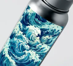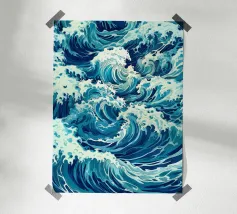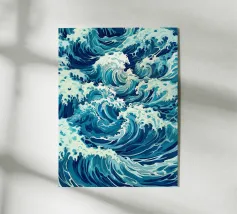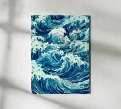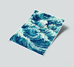 Questo potente motivo a onde celebra l'energia indomita dell'oceano in un'eleganza purista. La composizione ricorda la leggendaria "Grande onda" di Hokusai, interpretata con linee moderne e curve Art Nouveau. I toni monocromatici del blu - dal blu marino intenso al bianco spumeggiante - creano profondità e movimento ipnotici. Questa estetica marina senza tempo combina la tradizione giapponese con l'ornamento occidentale. Ideale per gli appassionati di mare e per chiunque apprezzi la forza della natura come forma d'arte!