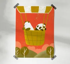 Avventura con orsi e panda in mongolfiera! Questa collezione unica presenta adorabili orsi e panda che vivono un'emozionante avventura in una coloratissima mongolfiera.