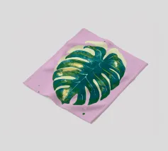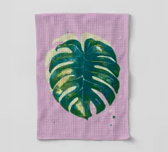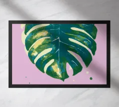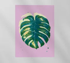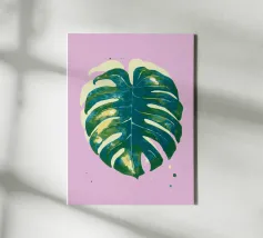 Dai più colore alla tua vita! Foglia di Monstera su sfondo rosa per tutti coloro che amano le piante e i colori della giungla. Illustrazione fatta a mano con amore e dedizione.