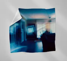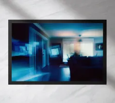 Trasformate il vostro spazio con questa rappresentazione eterea di un interno immerso in sfumature bluastre e nebulose. Perfetto per un tocco di mistero artistico.