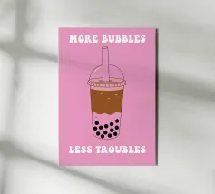 Aggiungete un tocco di pace e allegria al vostro spazio con questo design spumeggiante. "More Bubbles Less Troubles" è un disegno dal fascino spensierato che si adatta perfettamente a bagni, lavanderie o a qualsiasi angolo accogliente che abbia bisogno di una dose di calma e allegria.