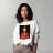 Graziosa arte natalizia accogliente e stravagante di una giovane donna che indossa un maglione natalizio a quadri rosso e guanti rosa. I suoi capelli sono acconciati e indossa un cerchietto con corna di renna, che aggiunge un tocco giocoso e festoso. Ha in mano una tazza di cioccolata calda con panna montata, un biscotto di pan di zenzero e una stecca di cannella, classici dolcetti delle feste invernali. Lo sfondo è scuro, con la neve che cade dolcemente, per esaltare l'atmosfera invernale e natalizia.