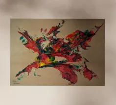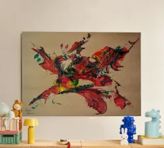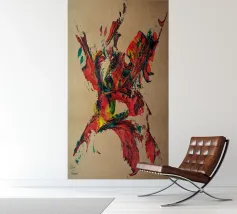 Quest'opera è realizzata su un foglio di cartone senza colorazione, lasciando visibili sullo sfondo le fibre di legno che la compongono. L'obiettivo è quello di presentare un'opera dipinta che mantenga un aspetto grezzo, offrendo un supporto che evochi la sua origine naturale. Il risultato è un'armonia e una maggiore facilità di integrazione in diversi stili di arredamento.