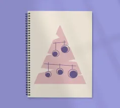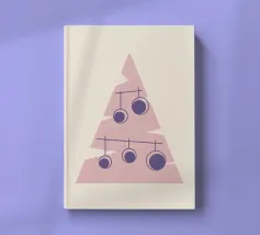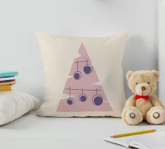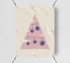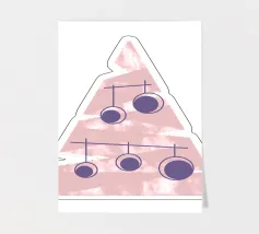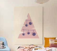 Albero di Natale dipinto in modo minimale con decorazioni semplici e stilizzate, bella illustrazione perfetta per un regalo di Natale o per la vostra decorazione interna natalizia. Natale non convenzionale nei toni del rosa.