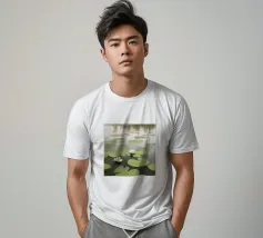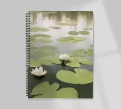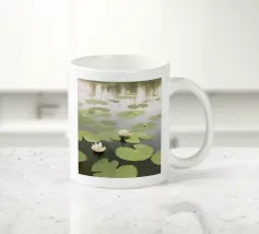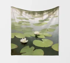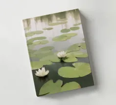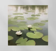 Questo elegante dipinto a olio mostra romantiche ninfee in morbide tonalità verde pastello che si riflettono nell'acqua, catturando la bellezza della natura in un lago armonioso.