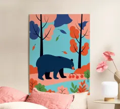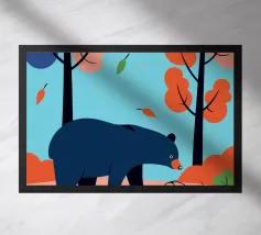 Godetevi la bellezza naturale di una foresta autunnale con questa illustrazione di un orso in cerca di cibo. I colori caldi e il design minimalista creano un'atmosfera pacifica e rasserenante.