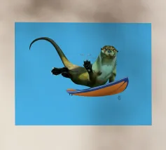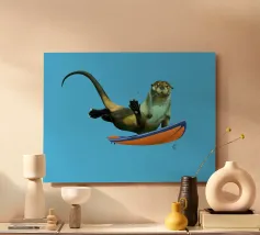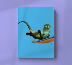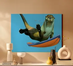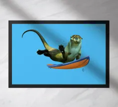 Illustrazione comica della meravigliosa lontra, che si diverte come una lontra mentre naviga nell'acqua, nel suo stile inimitabile.