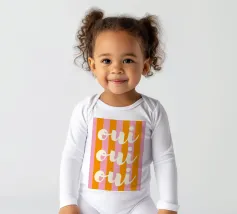 Parola d'arte francese, decorazione tipografica giocosa, strisce rosa arancione, citazione di design oui, stampa femminile retrò, arte dell'affermazione colorata