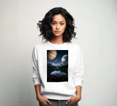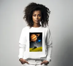 Immergete il vostro spazio nella meraviglia cosmica con questa incantevole opera d'arte che raffigura un lago sereno circondato da vivaci fiori selvatici e colline verdi sotto un cielo luminoso al tramonto. Un Saturno gigante mozzafiato si erge sopra l'orizzonte, con i suoi iconici anelli che si riflettono magnificamente nella calma acqua blu. Questo surreale paesaggio di fantasia fonde la maestosità celeste con il fascino terrestre, creando una scena pacifica e al tempo stesso suggestiva. Perfetto per gli amanti dell'arte spaziale, dei mondi onirici e dell'arredamento fantasioso.