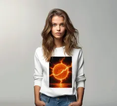 L'immagine ritrae una vista ravvicinata di Marte, che mostra la sua caratteristica superficie rosso-arancio. Un'importante fessura attraversa il pianeta, emettendo un bagliore ardente che suggerisce un'attività vulcanica. Il pianeta è immerso in un cielo scuro e stellato, con una debole nebulosa blu e rossa visibile sullo sfondo.