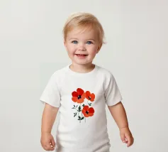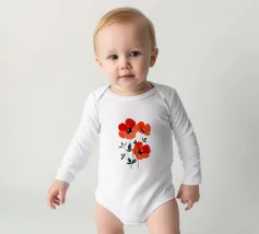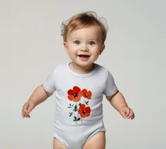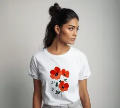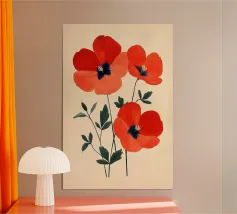 L'immagine mostra tre papaveri rosso vivo con foglie sottili e scure e stami neri e gialli di grande effetto. Lo stile è botanico e dettagliato, con una rappresentazione chiara e artistica delle forme della pianta. Ricorda le illustrazioni scientifiche o gli eleganti studi naturalistici.