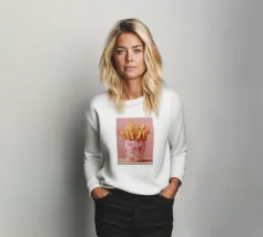 Questa affascinante illustrazione di patatine fritte in una scatola a righe pastello cattura l'aspetto nostalgico e retrò del popolare snack. Con pennellate morbide e una tavolozza di colori armoniosa, l'opera d'arte vintage trasmette una cultura alimentare giocosa e trasforma il fast food in arte culinaria creativa.