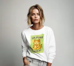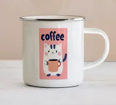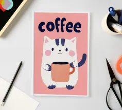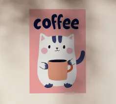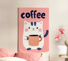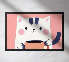 Questo simpatico gatto scarabocchio con la sua tazza di caffè aggiunge un tocco di umorismo e di stile a qualsiasi spazio abitativo.