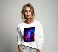 Questa grotta colorata presenta un percorso vibrante illuminato da luci brillanti e piante luminose, con pietre che rivestono il terreno, creando un'atmosfera magica.