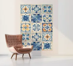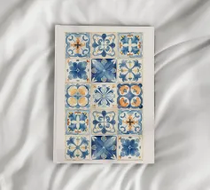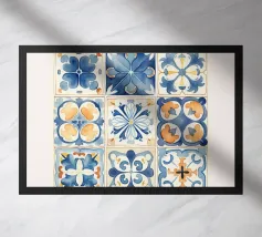 Infondete il vostro spazio con il fascino vibrante di queste "piastrelle mediterranee". Questa accattivante opera d'arte presenta una griglia di piastrelle splendidamente illustrate, con intricati motivi geometrici e floreali in una suggestiva tavolozza di blu, arancioni e gialli. Ricorda i tradizionali Azulejo spagnoli o i disegni portoghesi, questo pezzo è perfetto per aggiungere un tocco di rustica eleganza europea e calore a qualsiasi stanza. Il nostro poster vanta un'arte digitale di alta qualità a 7000x5000 pixel e 300 dpi, assicurando che ogni dettaglio intricato e ogni tonalità vibrante siano riprodotti in modo impeccabile per una visualizzazione davvero accattivante.